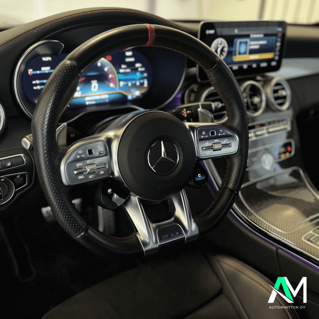 Mitä varusteita pystymme lisäämään on LED-screen ohjauspyörän päälle, mikä näyttää kierrokset (RPM) ja antaa ohjauspyörälle agressiivisemman ulkonäön.