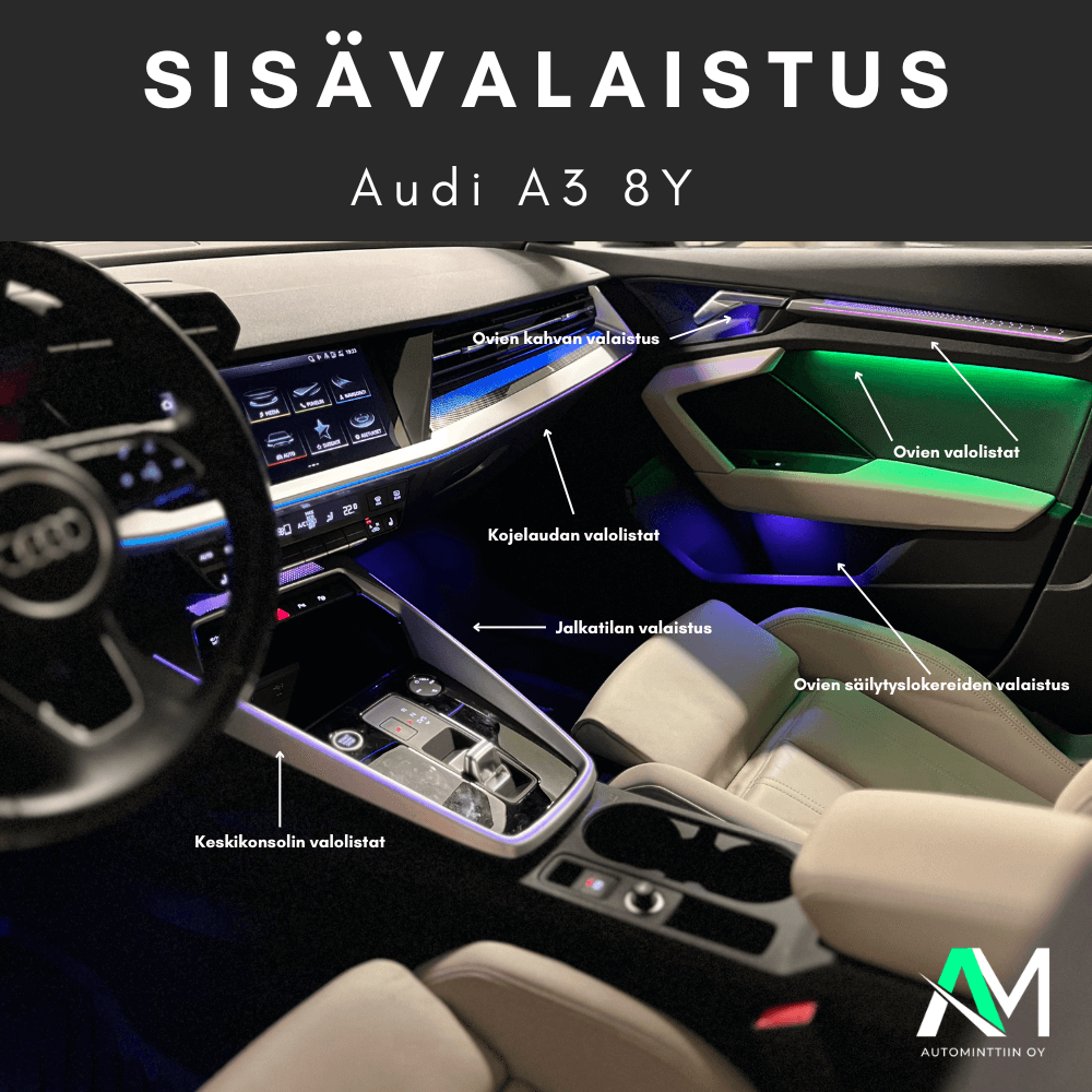 Tämä on meidän paras ratkaisu Audi A3 8Y korimalleihin, se tuo valaistusta sisustan jokaiseen alueeseen ja pimeän aikaan luo mukavan tunnelman jokaiselle matkustajalle, kuin myös kuljettajalle.