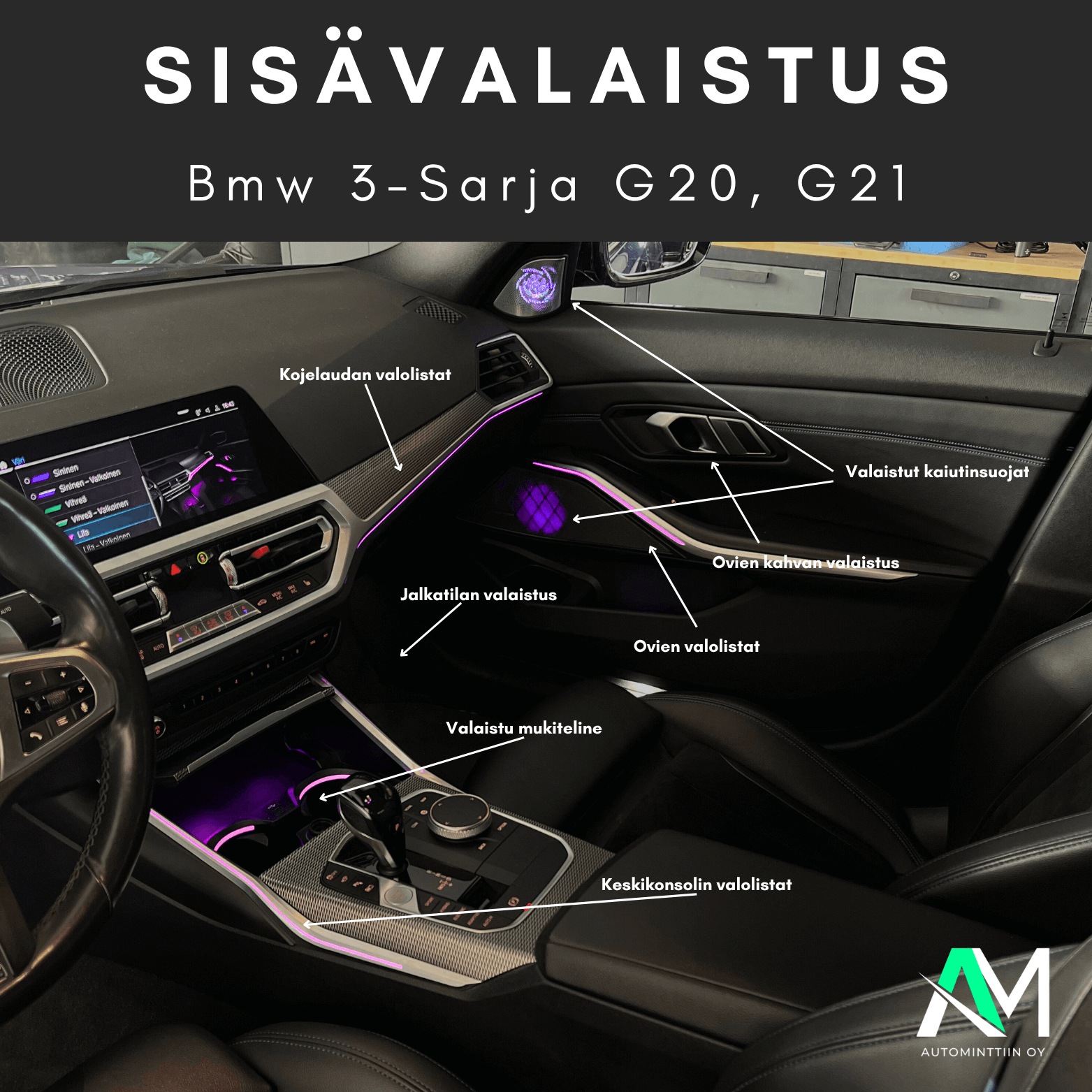 Tämä on meidän paras ratkaisu Bmw G20 ja G21 korimalleihin, se tuo valaistusta sisustan jokaiseen alueeseen ja pimeän aikaan luo mukavan tunnelman jokaiselle matkustajalle, kuin myös kuljettajalle.