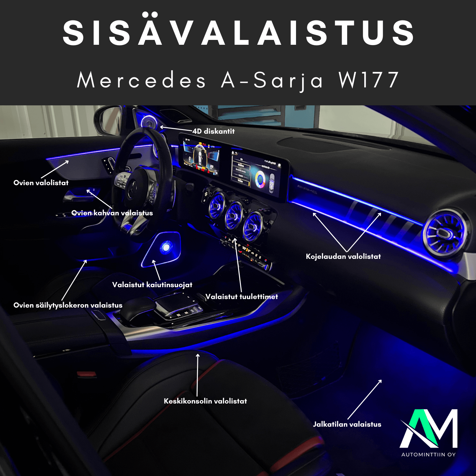 Tämä on meidän paras ratkaisu Mercedes W177 korimalleihin, se tuo valaistusta sisustan jokaiseen alueeseen ja pimeän aikaan luo mukavan tunnelman jokaiselle matkustajalle, kuin myös kuljettajalle.